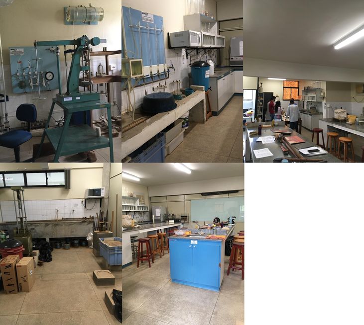 Com área de aproximadamente 130 m, dispõe de tensiômetros, medidores de umidade e anemômetros, equipamentos de campo adquiridos mediante projeto de doutorado FAPESB. Conjunto de peneiras, umidímetro tipo “Speedy”, estufa, balança eletrônica, balança analógica, aparelhos de Casagrande manuais e elétricos, bomba de vácuo para ensaio de peso específico dos grãos de solo, trados manuais, torno para moldagem de corpos de prova, câmara úmida, prensa de adensamento, prensa de cisalhamento direto, painel para ensaios de permeabilidade a carga constante e variável, conjunto para ensaio de compactação, conjunto para ensaio de densidade “in situ”, prensa de CBR, dispersor elétrico para solos, aparelho para ensaio de equivalente de areia, dessecador, 03 microcomputadores e impressoras. Os equipamentos de campo permitem realizar ensaios em solos não saturados, e os equipamentos de laboratório permitem a realização dos ensaios de caracterização dos solos, resistência ao cisalhamento, ensaio de absorção de água no solo, permeabilidade, compactação, CBR. Ao longo dos mais de quinze anos de existência apoiou pesquisas relacionadas ao mapeamento geotécnico do subsolo local, a construções com solo-cimento para utilização em pequenas comunidades e, principalmente devido à elevada demanda do mercado, prestou serviços técnicos a diversas empresas no que se refere a realização de ensaios de caracterização dos solos, compactação, índice suporte California, permeabilidade para obras de rodovias, pavimentação e barragens de terra. Atualmente, com a aquisição de equipamentos de campo para estudo do comportamento de solos não saturados, ampliou sua área de atuação no nível de pesquisas relacionadas ao comportamento das camadas de coberturas de aterros de RSU, incluindo a avaliação de materiais alternativos, como RCD, através de projeto de pesquisa. Realiza também ensaios de caracterização física de RSU.